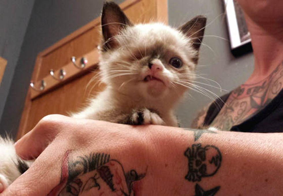 "His feral litter was attacked by a raccoon, mom and one baby didn't make it," said his foster mom.
