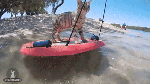 This cat with many skills loves to go to the beach with his human dad and furry friends for adventures and fun. Ever since he hopped onto a skimboard, he's hooked!
