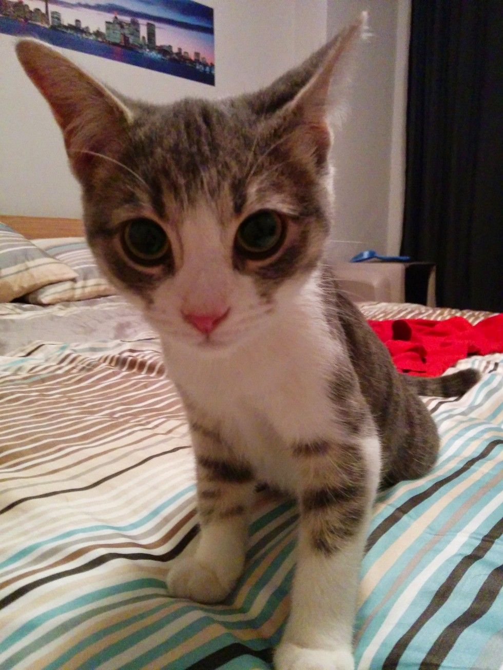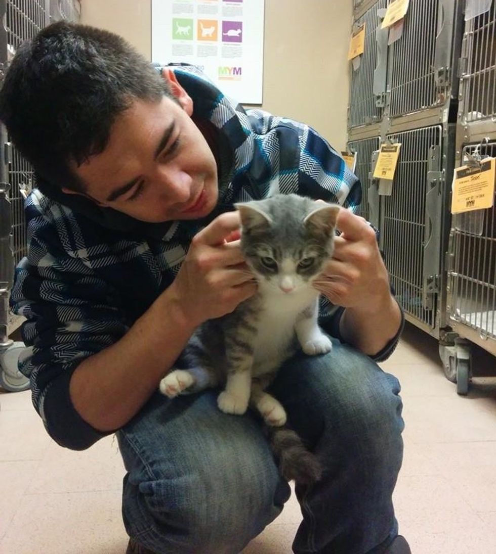 Imgur user afelotreyu went to SPCA, looking to adopt a cat, but little did he know an affectionate grey kitty would jump in his arms and claimed him as her human for life.