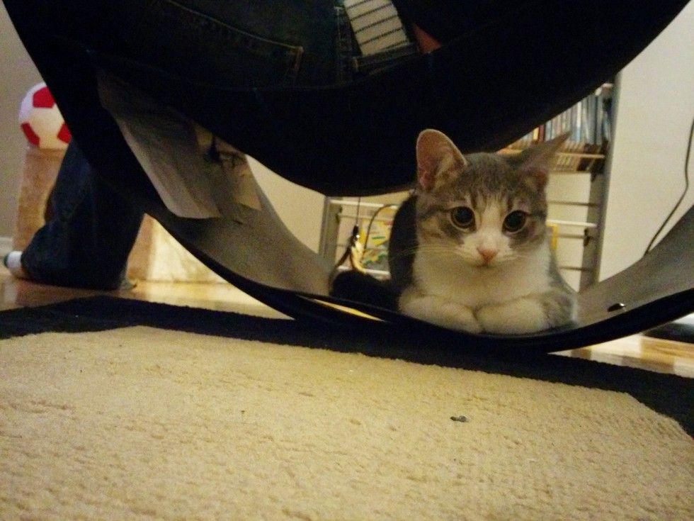 Tiny is never too far from her human. When he is sitting in the chair, she's right beneath it.