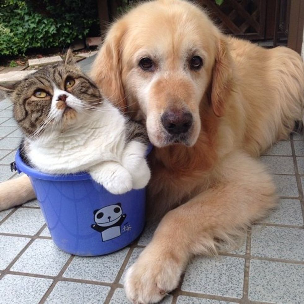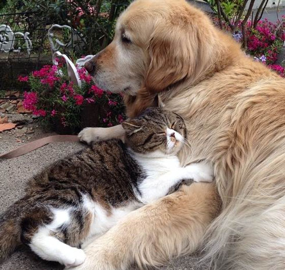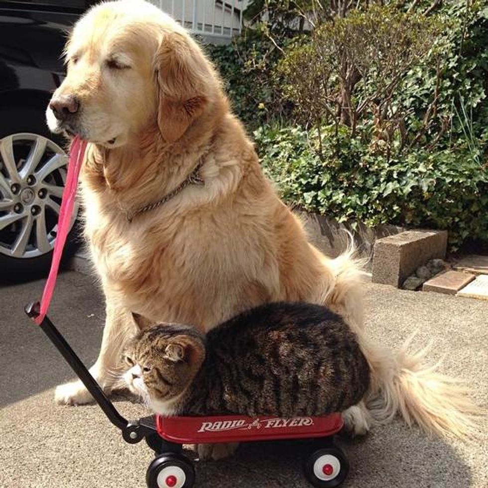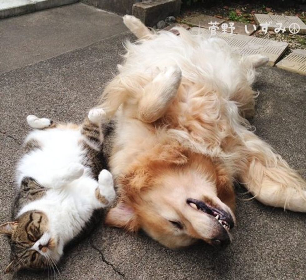This is a beautiful friendship between a cat and a dog. Arashi the cat has a friend named Oliver, a Golden Retriever. The duo are totally inseparable.