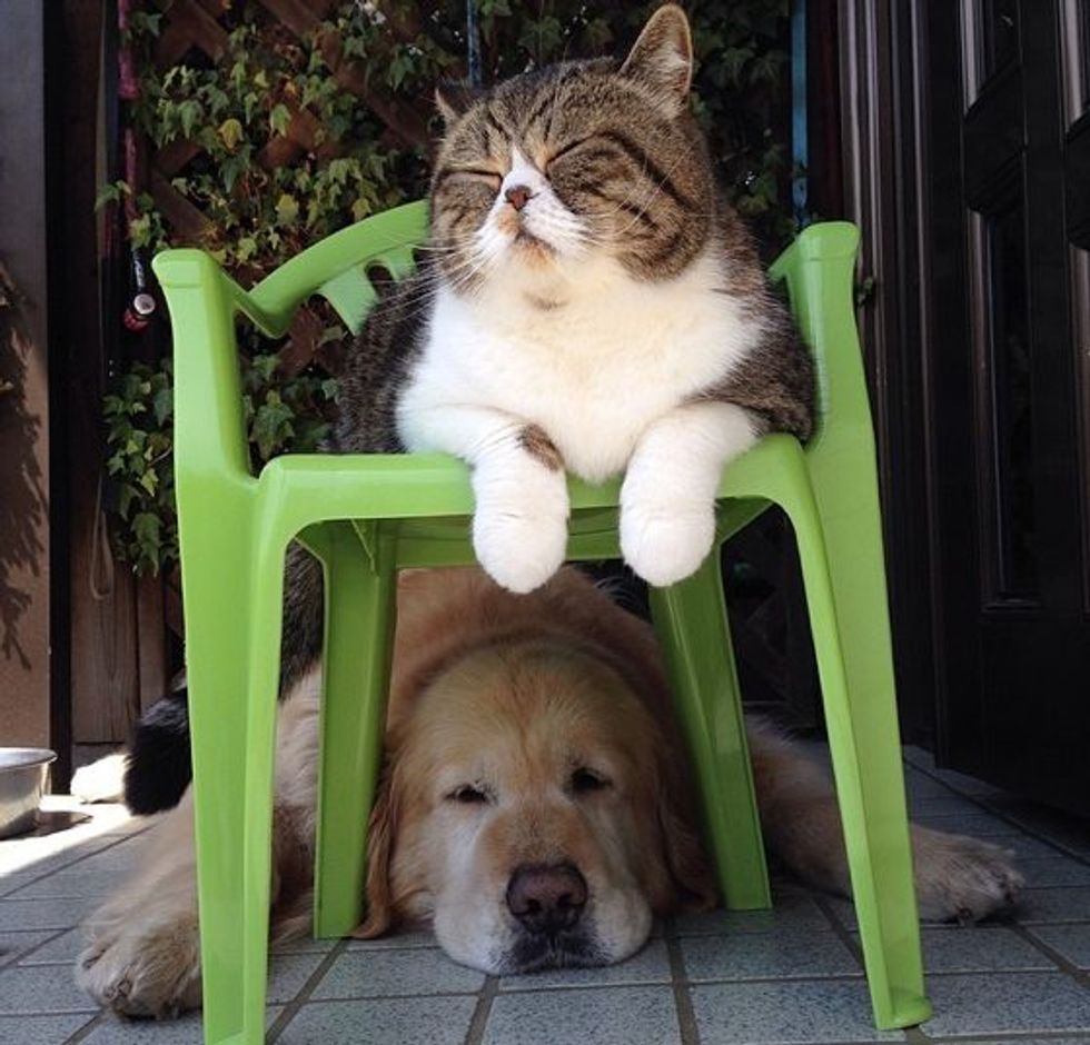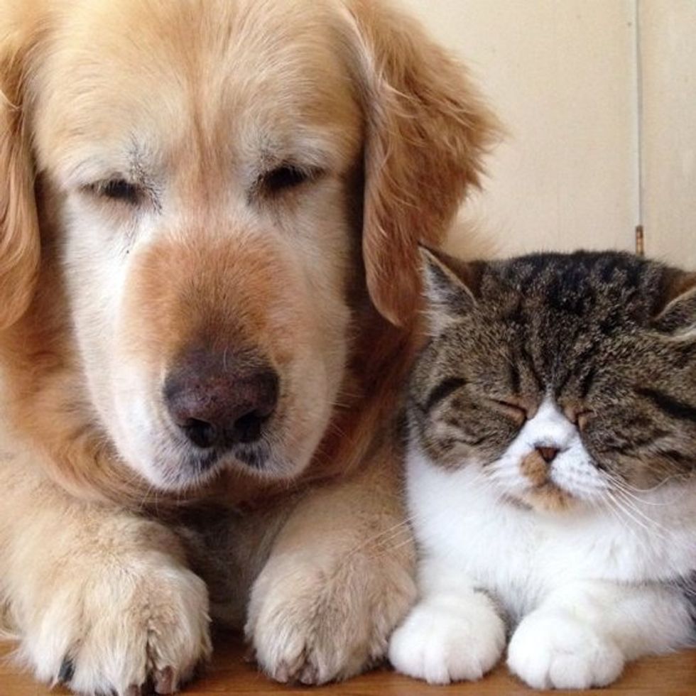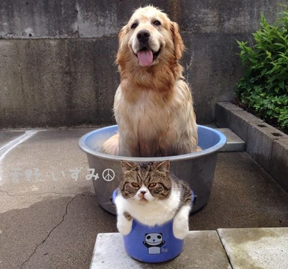 This is a beautiful friendship between a cat and a dog. Arashi the cat has a friend named Oliver, a Golden Retriever. The duo are totally inseparable.