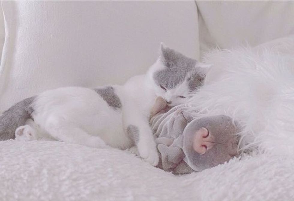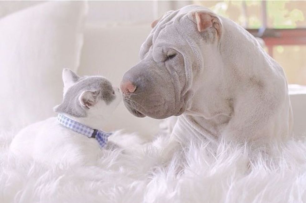 They are of two different species but love has no boundaries. Butler the cat and Paddington the dog are inseparable friends.