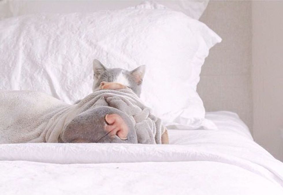 Annie often see the two spending their afternoon hours together napping away. Butler adores her wrinkled blankety buddy.