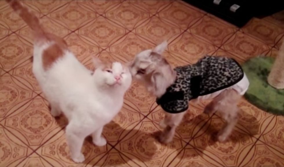 "A beautiful friendship formed here a couple of years ago between a newborn goat kid, KT and William the cat," Gunyah Animal Healing Sanctuary told Love Meow.