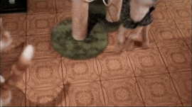 When KT was rescued, he could barely stand up. With help from William the cat, he's fully recovered.