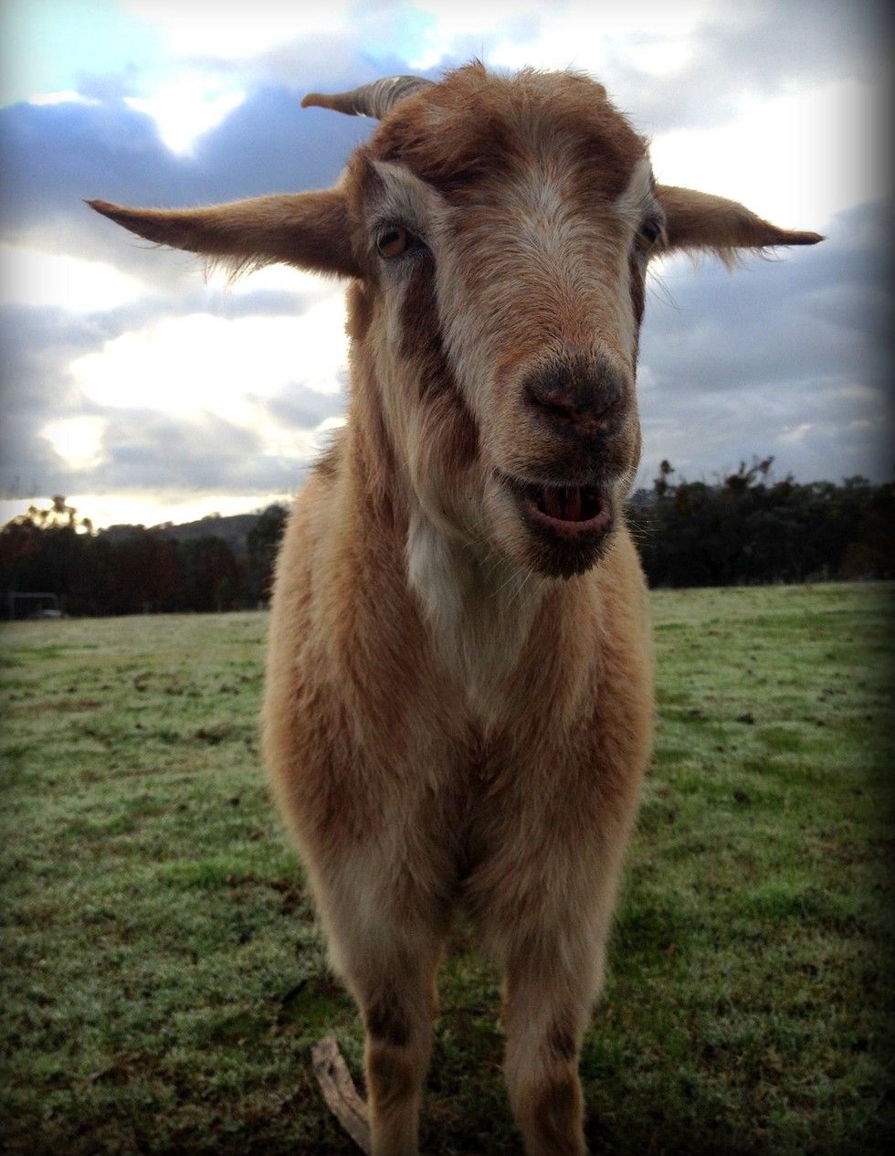 The baby goat was found beside a road, alone and scared. "Defenseless against a pack of crows that pecked at his face. He was just a newborn kid. With no mother in sight, a good samaritan stopped, scooped up this tiny bundle and drove him to Gunyah Animal Healing Sanctuary Inc."