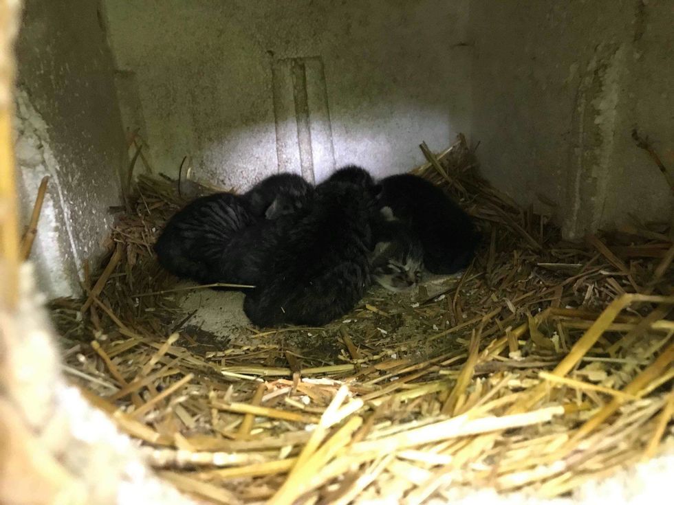 When she heard her kittens' cries, she rushed back to them in their nest and started feeding and cleaning them.