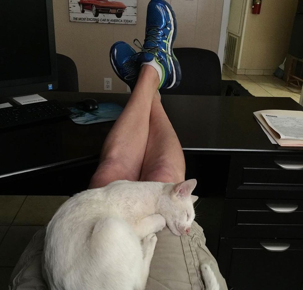 The cat continued her daily visit to the store and spent time with her human friend. "She came into my office, found her food and water and ate. She found the bed I purchased for her and slept in it," Brian told Love Meow.