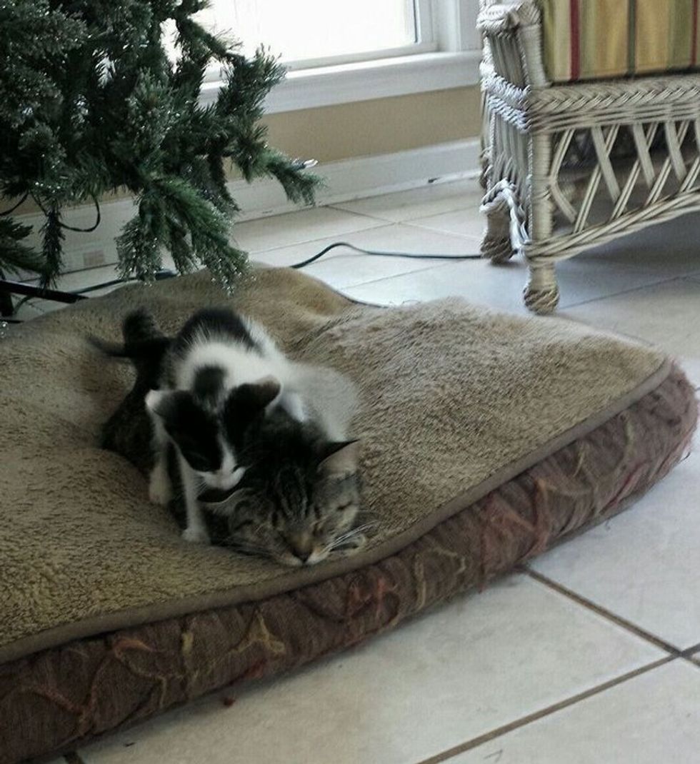 A few years later, Posey surprised her humans one day when they saw a little homeless kitten follow their cat into the house.