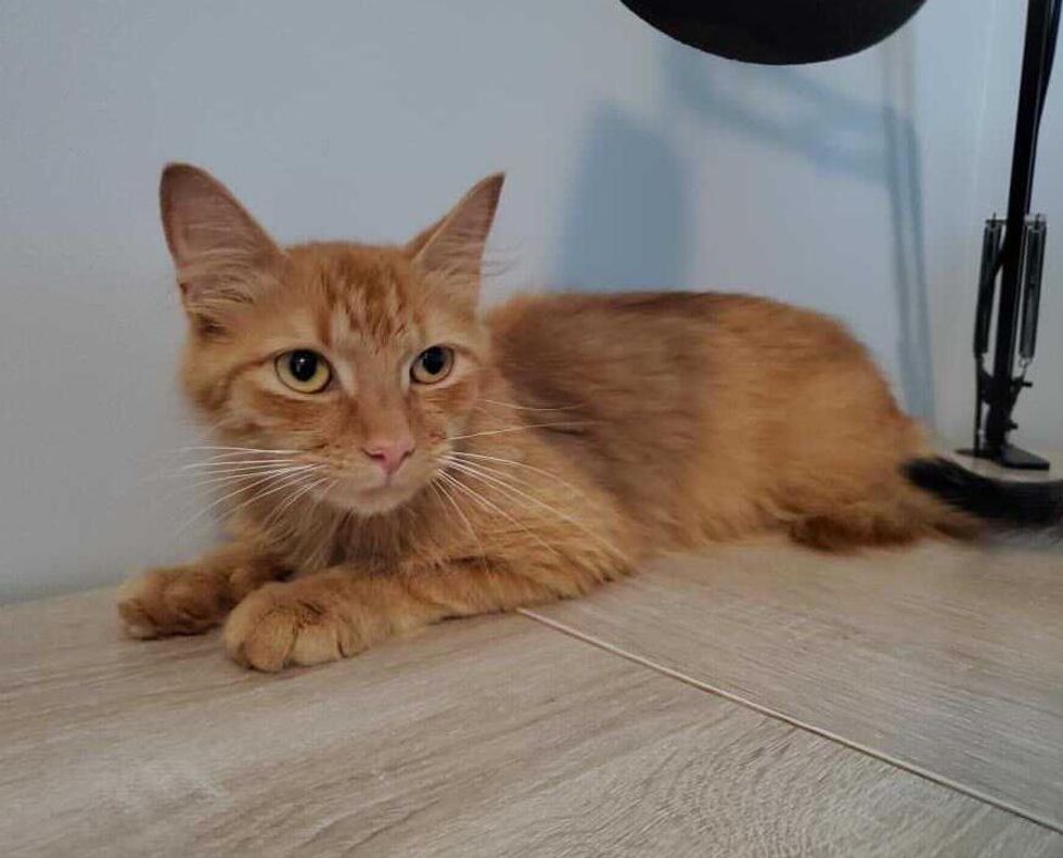 The orange tabby first showed up on the family's porch by herself, crying for food. She was very shy but so hungry that she mustered enough courage to seek help. After getting her belly filled to the brim, she ran off for the night.