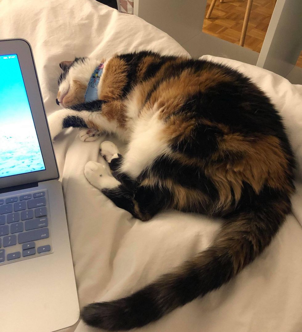 "Kaelle is quiet by nature and loves to be petted. She likes to be near her humans and keep them company when they telecommute," Celine shared with Love Meow.
