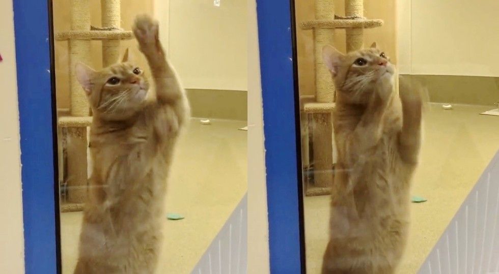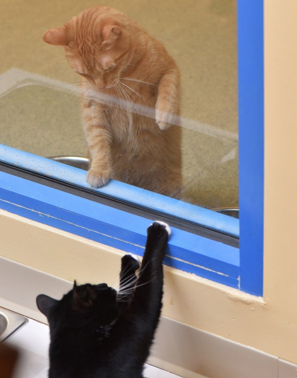"Amazingly, neither Olive nor Simba particularly likes other cats...but they've definitely enjoyed playing with each other through the glass!"