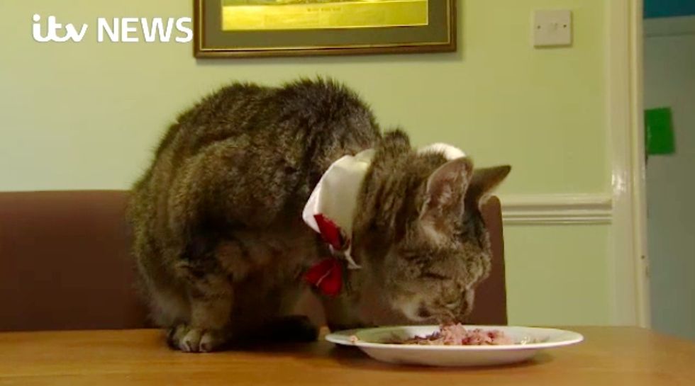 26 years ago a couple was chosen by a 5-year-old stray cat in their backyard. Since then, he's been an important part of their family. Today, he's celebrating his 31st Christmas.