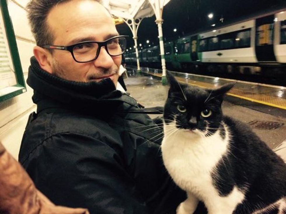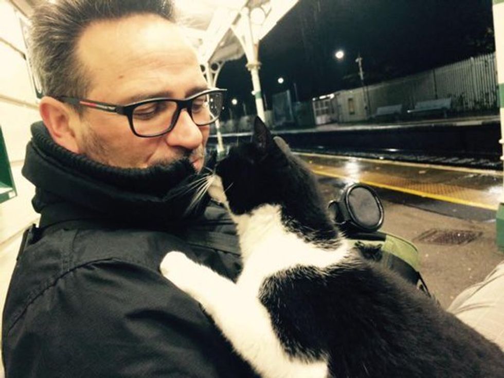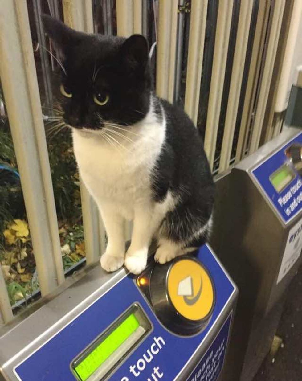 Many passengers have been greeted by this friendly tuxedo cat every day since 2014 and it's something they always look forward to in the morning - a great start to the day!