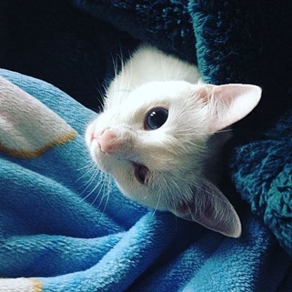 "She is now a very happy, sweet cat - I don't even realize that she's missing an eye or that she's deaf anymore."