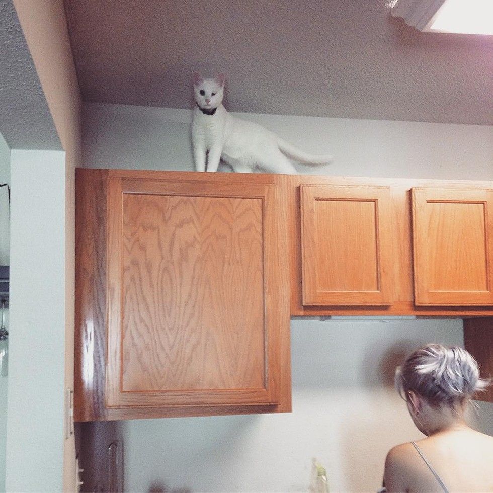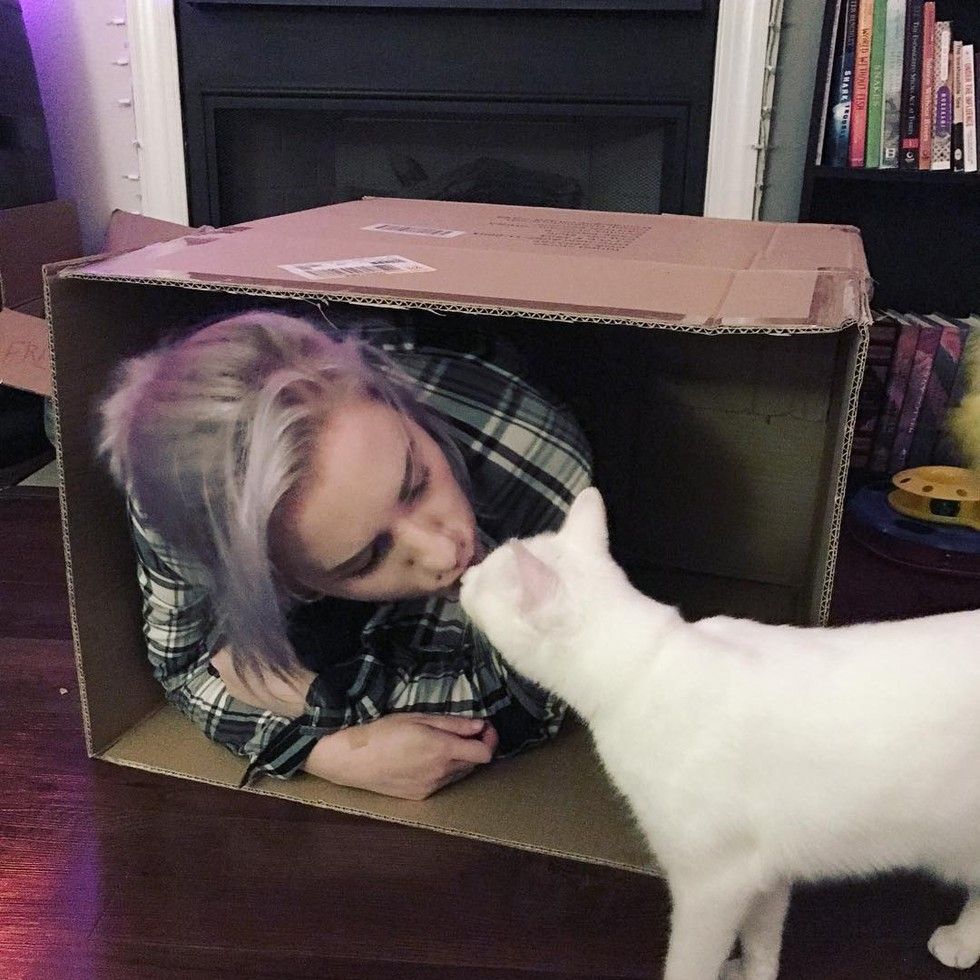 "I like to scoop her up and carry her around like a baby, and she just sits there like a loaded baked potato, purring away, until she decides she wants to go cause trouble and knock over any cups she can find or find a nice spot in the sun to snooze."