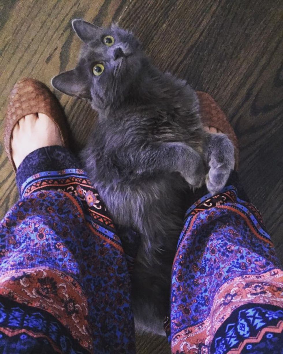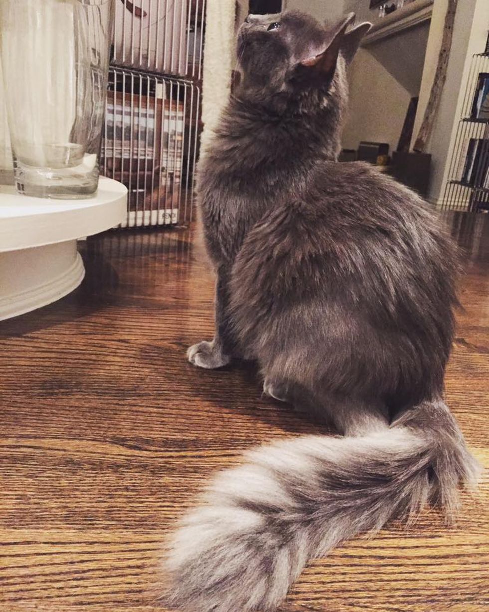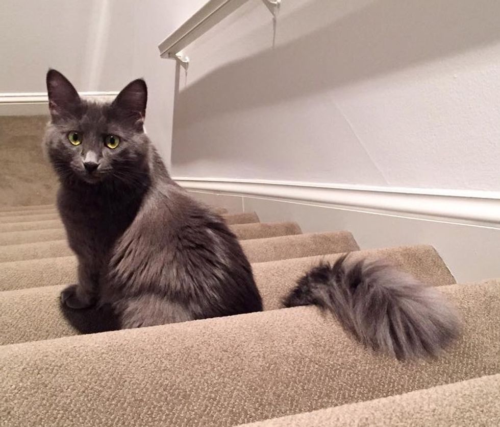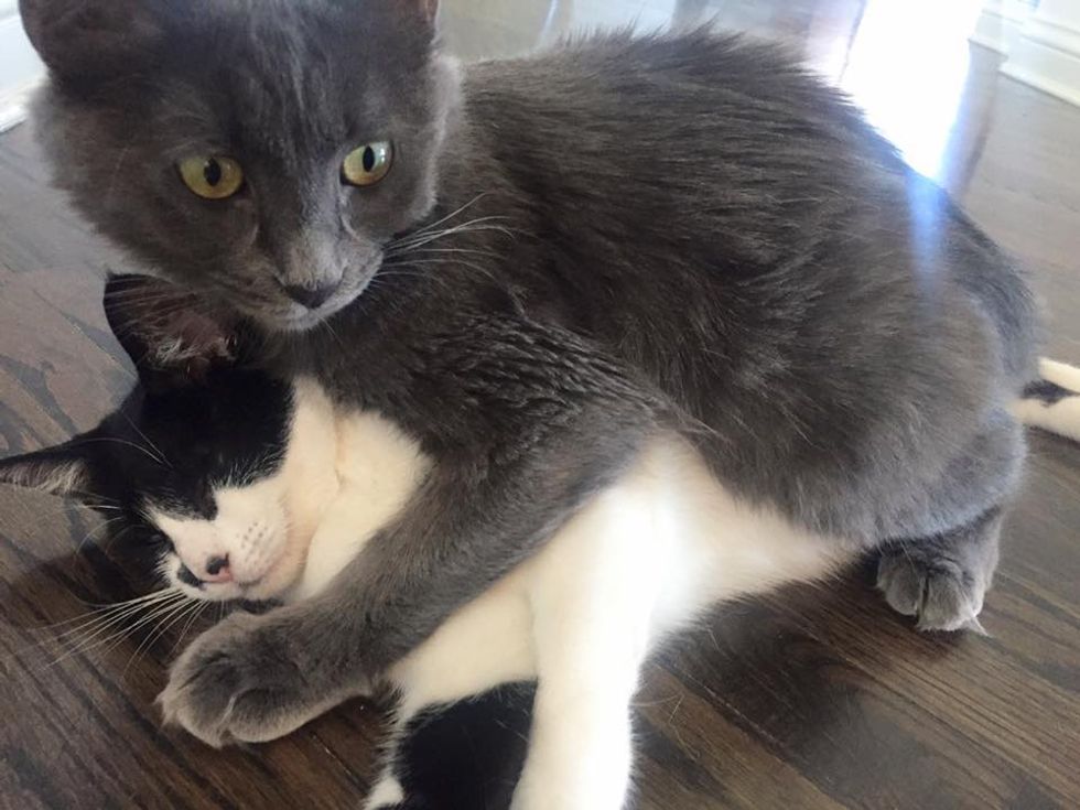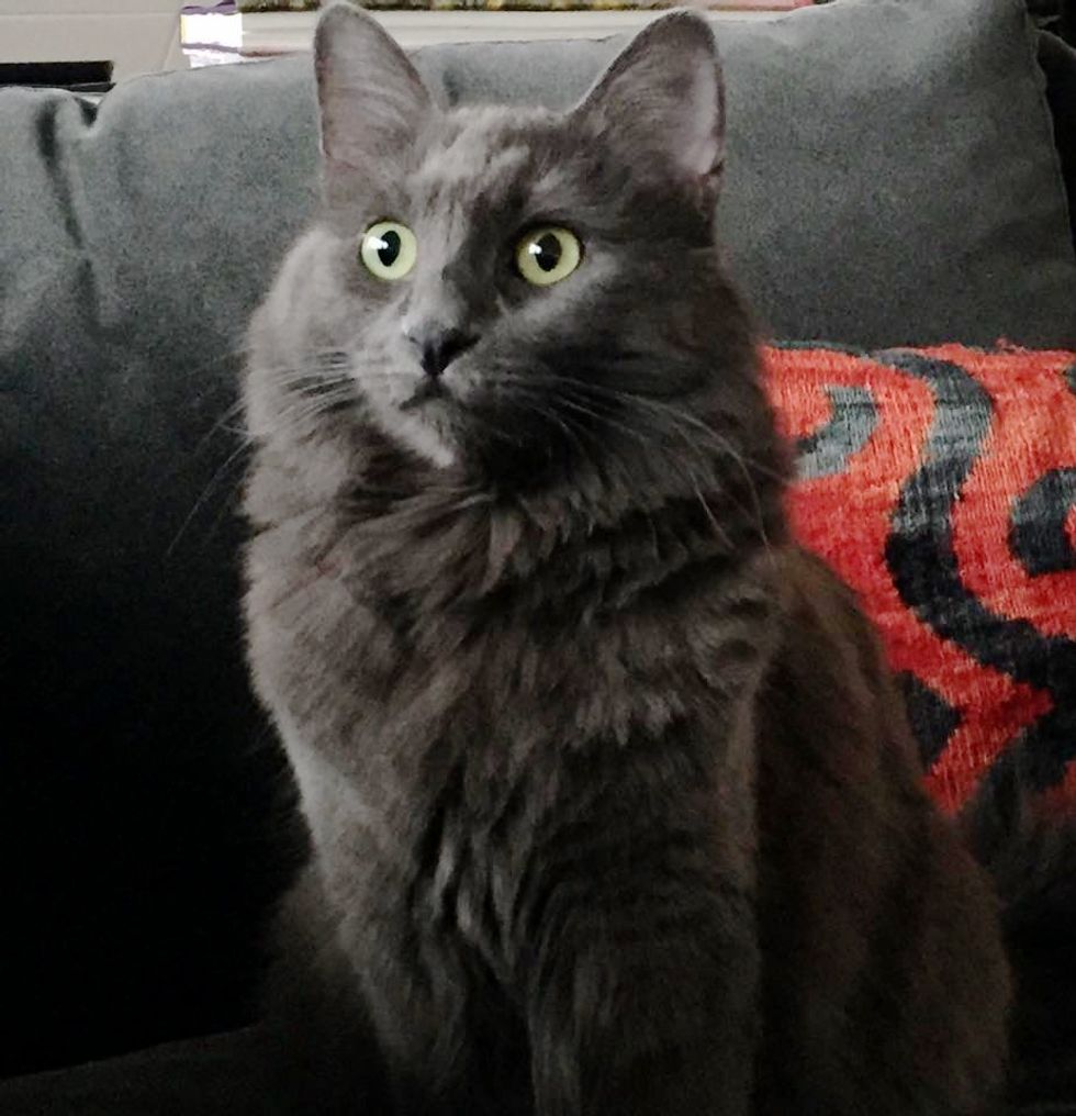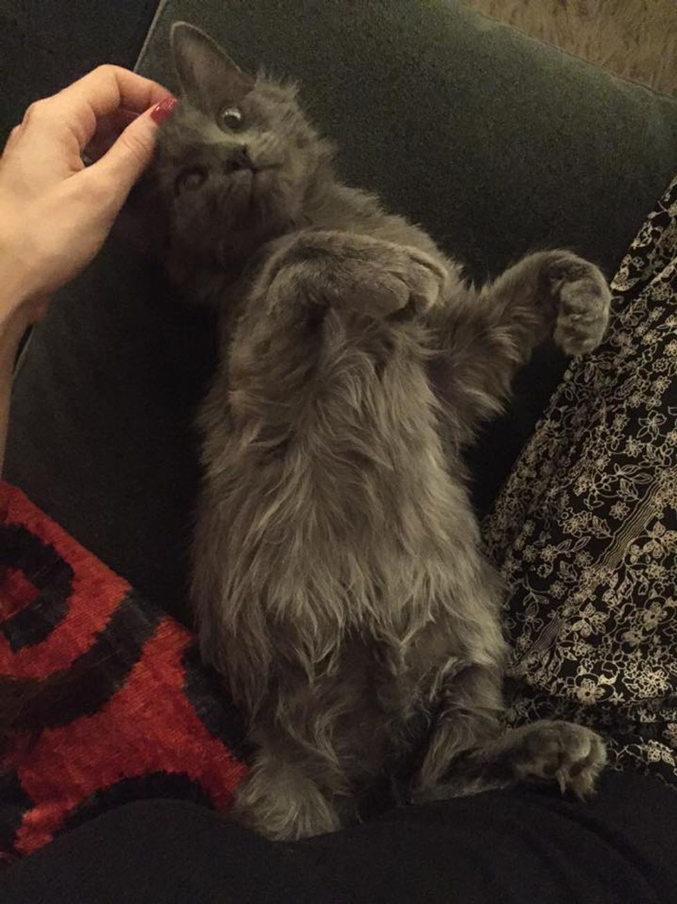 The purple kitten has transformed into a beautiful cat and grown back his gorgeous fluffy gray coat. Smurf and Wanda have so much to give and are so grateful for a place to call home.