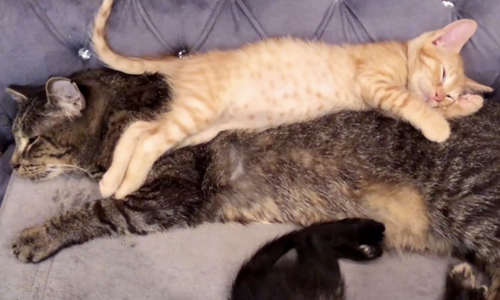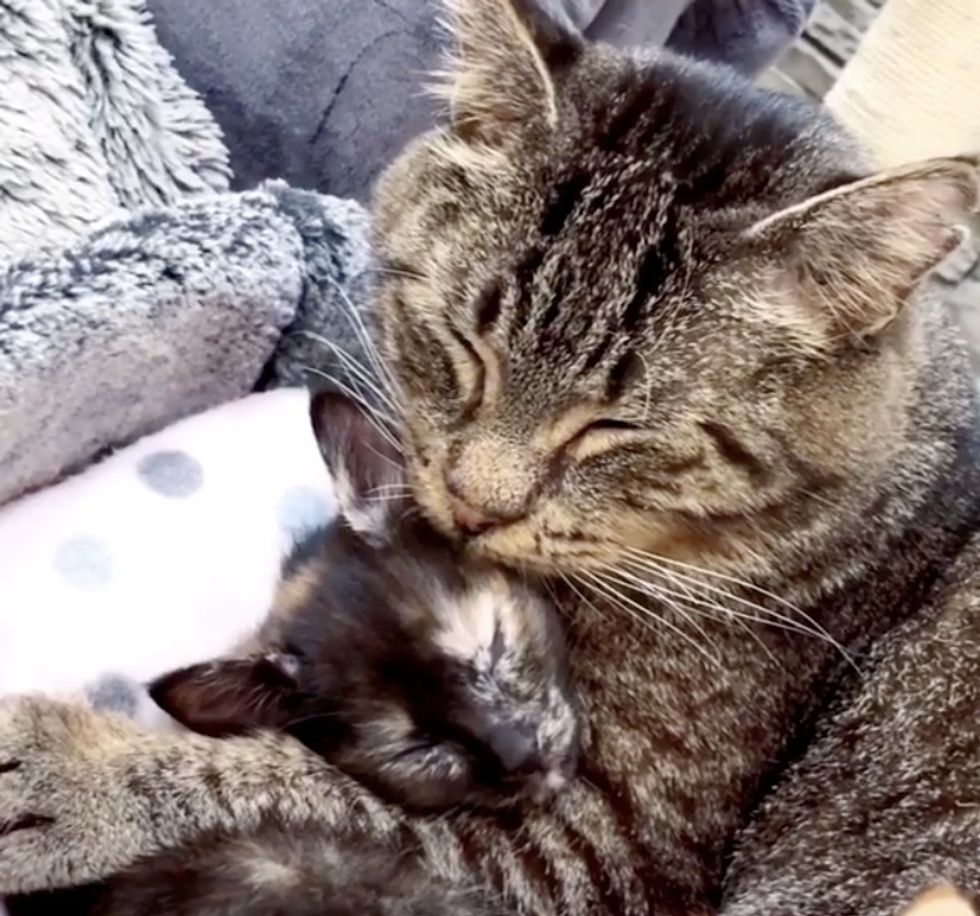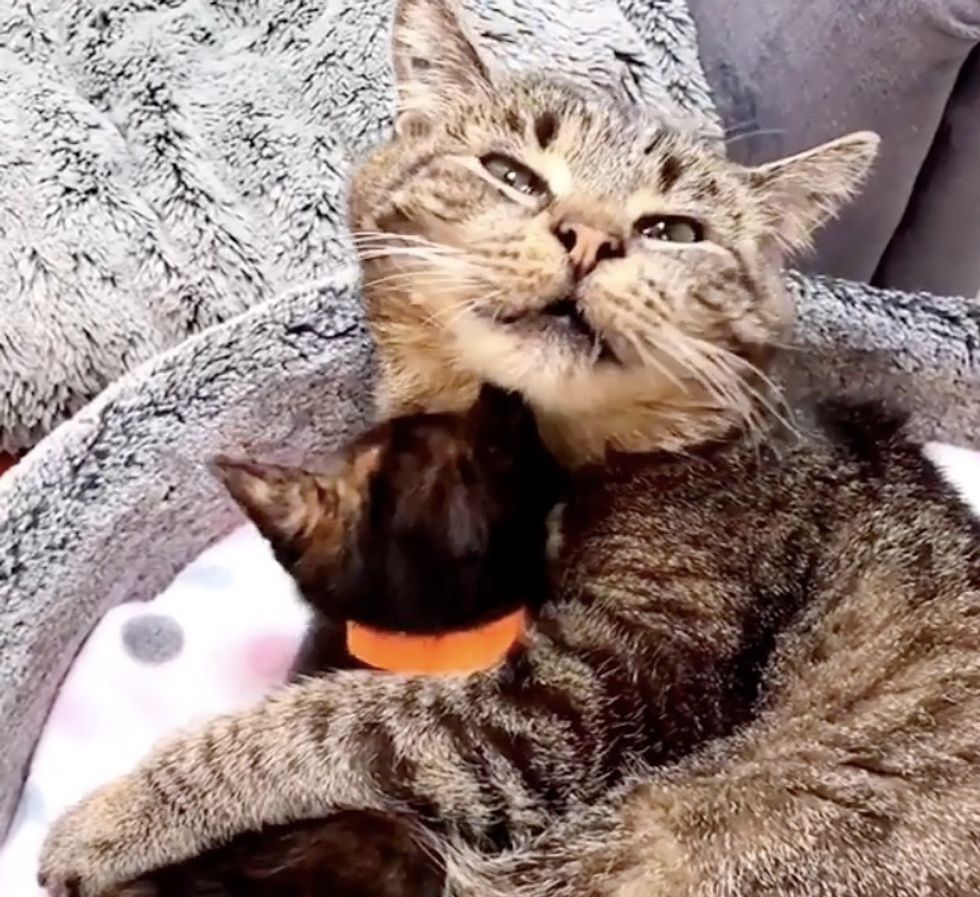 A senior cat named Grandpa Mason was so happy when he received new kittens to cuddle with after months of waiting.