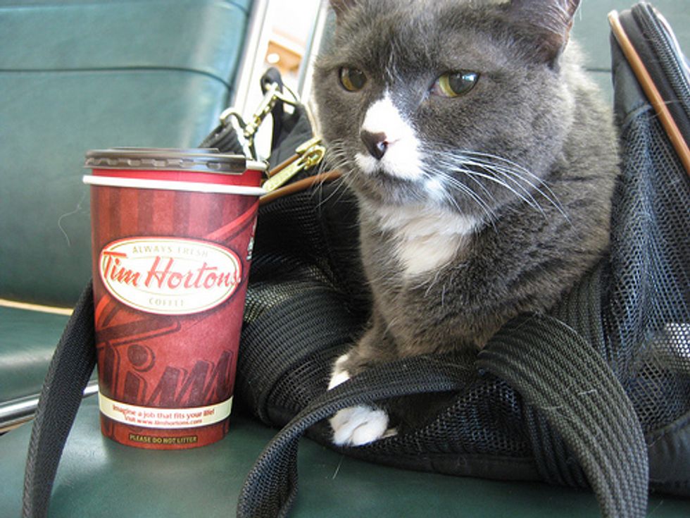 The portly cat was in a carrier before arriving at their security checkpoint. When they reached the x-ray machine, the cat owner and her daughter were asked to remove the cat from the container, so they could put the carrier through the machine. However, the cat was not used to the crowd and the rowdiness at the airport during early morning rush hour, frightened, he ran off and found refuge under a bomb-detection machine.