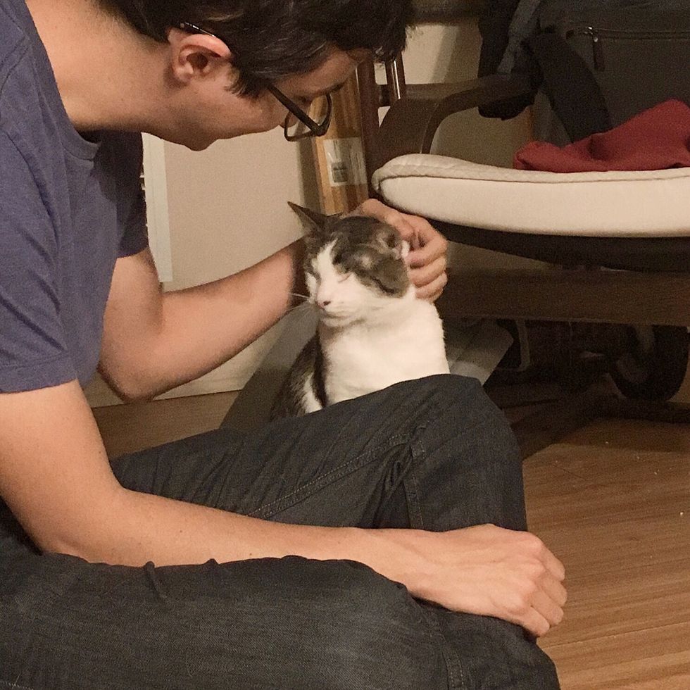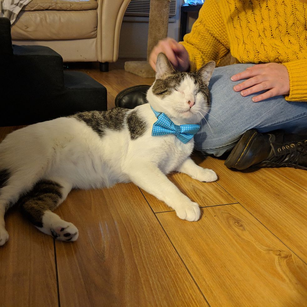 Melvin is a snugglebug who loves to play with his humans and has a collection of boxes to scratch, chew on and hide in.