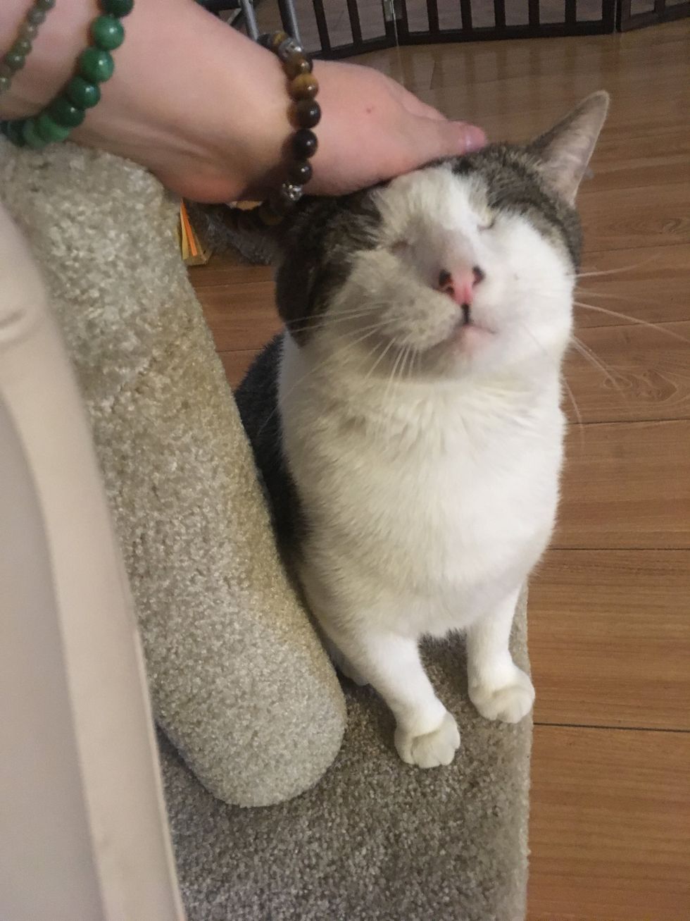 "He'd hear and smell the other cats outside his door and walk toward them. I could see his ears and whiskers working overtime to compensate for the lack of sight," Samantha said.