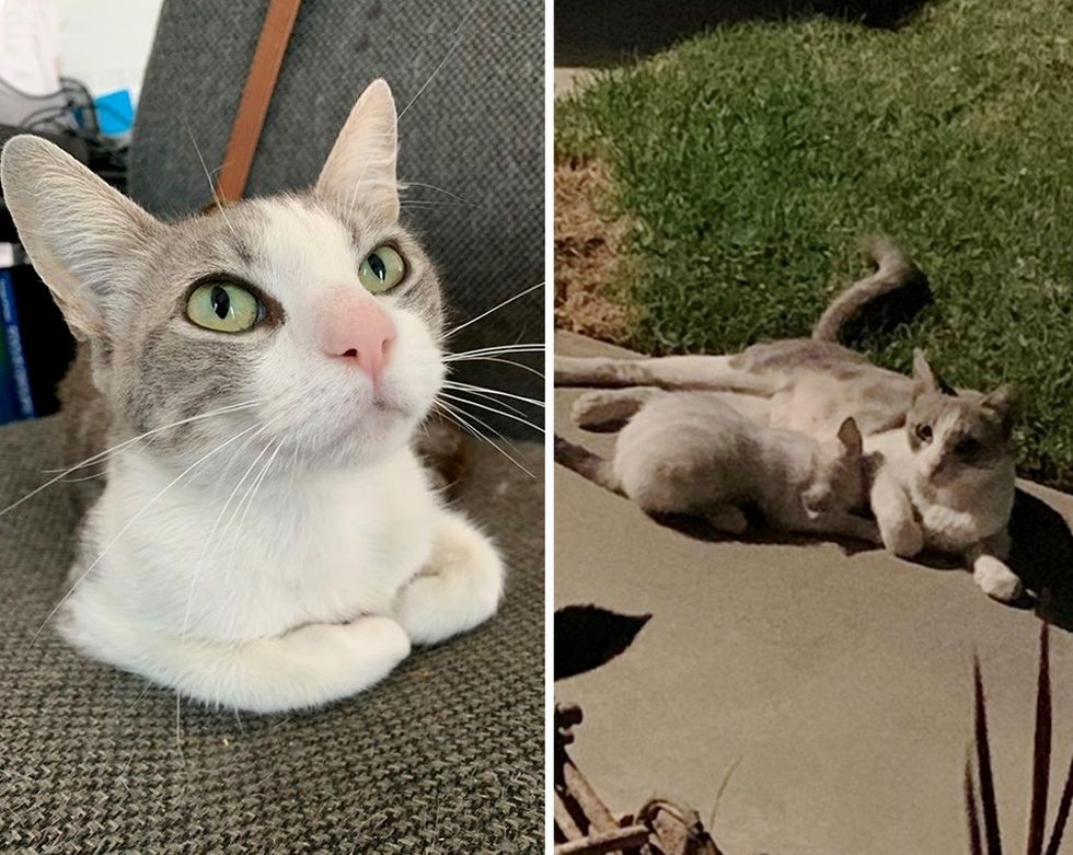 The family continued to put food and water out to help the little stray. Later one evening, they saw the cat return and were surprised by what they discovered.