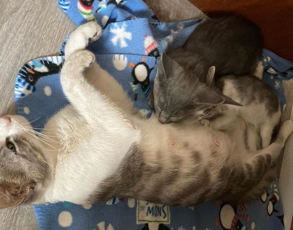 Alio and Olio quickly warmed up to their foster family. Mama Rosie had done a wonderful job taking care of her kittens. Now, she could finally relax and get some much-needed shut-eye.