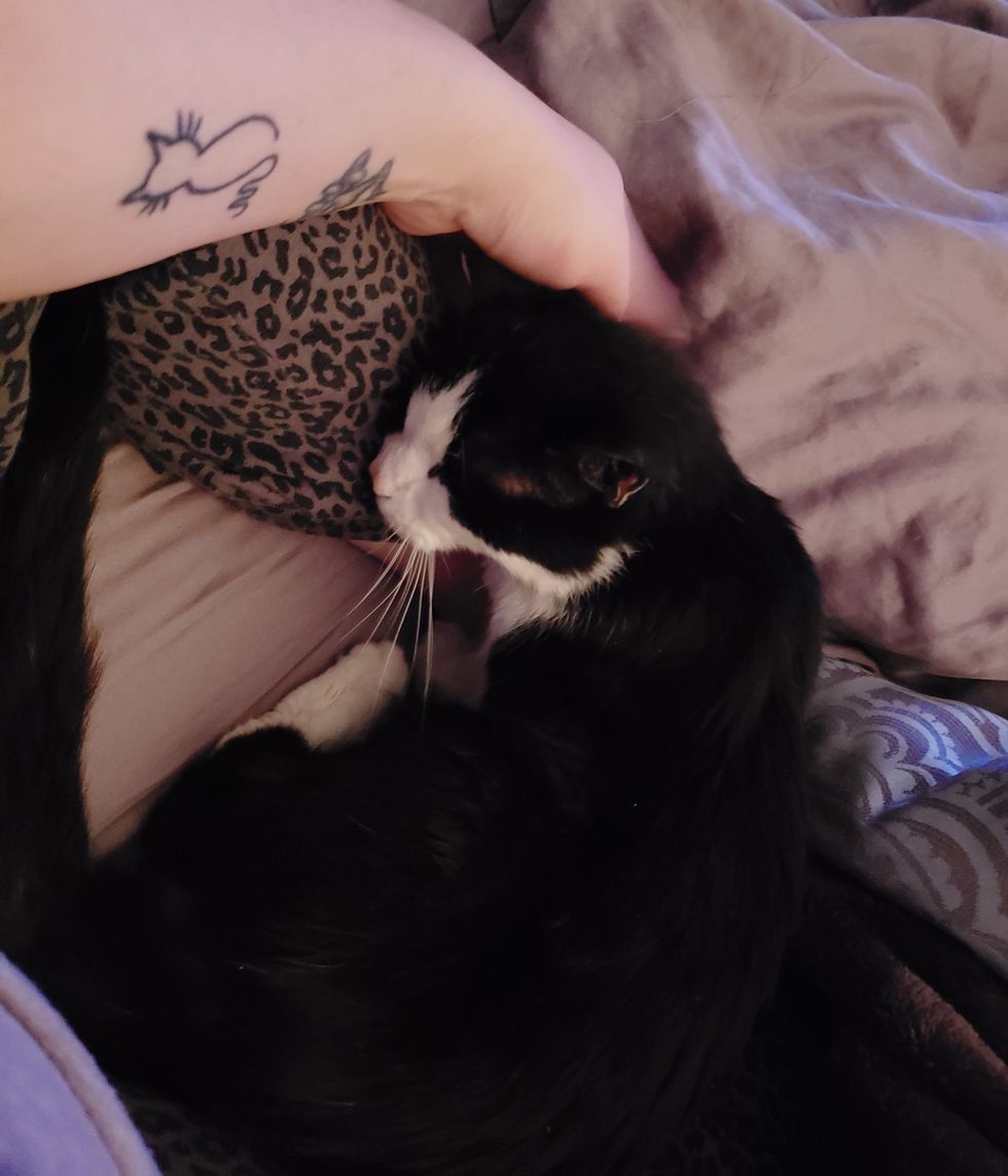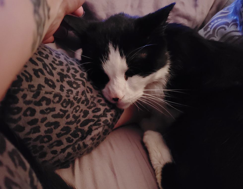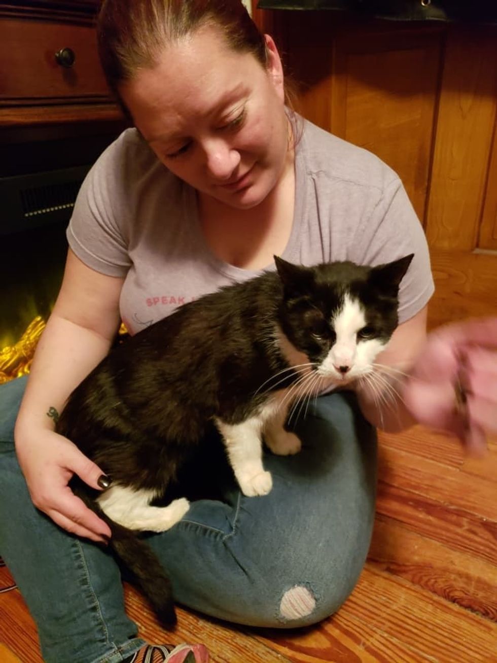 The sweet tuxedo immediately reminded her of her previous adoption from BARCS — Minnie the cat — who was also 20 years old when they welcomed her into their loving home. "Minnie and I bonded instantly like I'd had her entire life. She was also in renal failure," Rebekah told Love Meow.