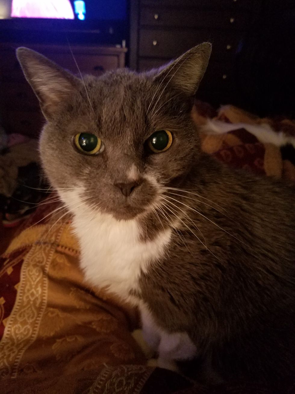 Lady chirps at her humans for attention and throws her whole body into them for love and ear scritches. She prefers having her human mom beside her while she eats so she will never feel alone.