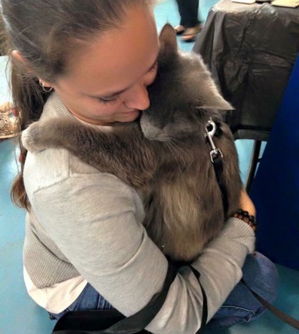 He is blind but this rescue cat loves to give hugs and hang out with dogs like a boss.
