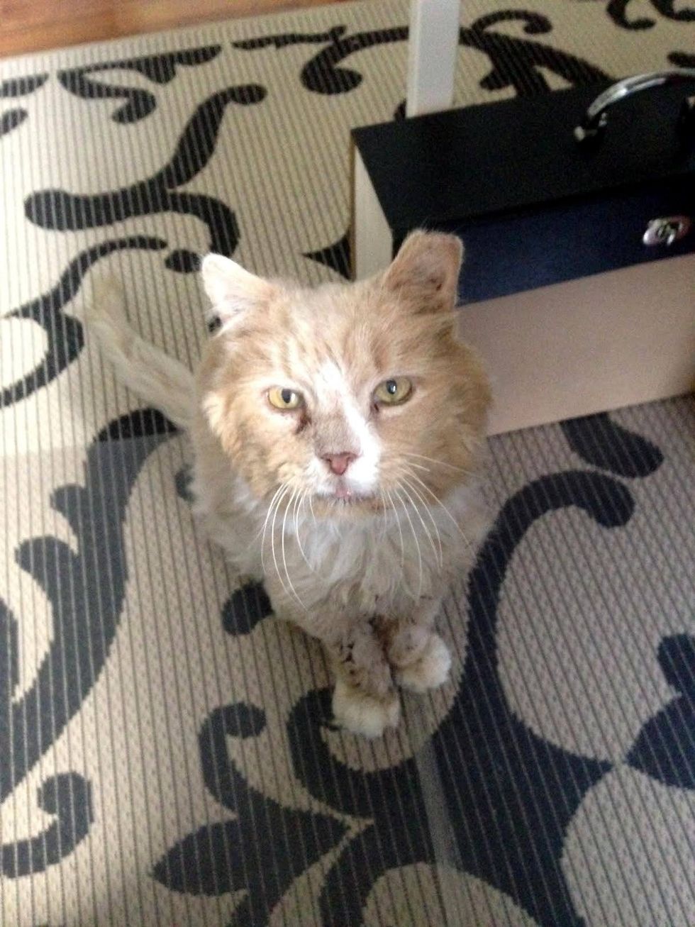 When Frisbee was spotted, he was covered in dirt and mats. Rescuers of Lowell TNR Coalition set out traps to get the kitty to safety and the kind folks from Merrimack River Feline Rescue Society (in Salisbury, Massachusetts) took him in and got him the help he desperately needed. .