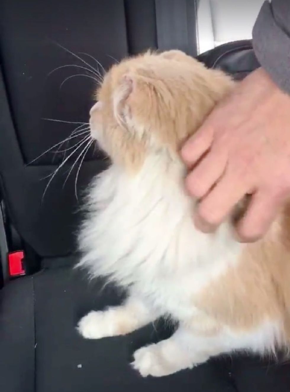 They managed to get him warmed up and took him straight to the vet. "He's skinny, his ears are a mess, he's matted, but he's one of the most lovable kitties I've ever rescued from that kind of traumatic situation."