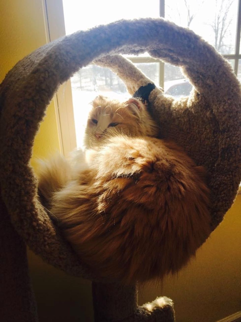 "This morning I walked in to see him bathing in the sun on the cat tower. He even ate a few bites of food, as long as I continued to pet him."