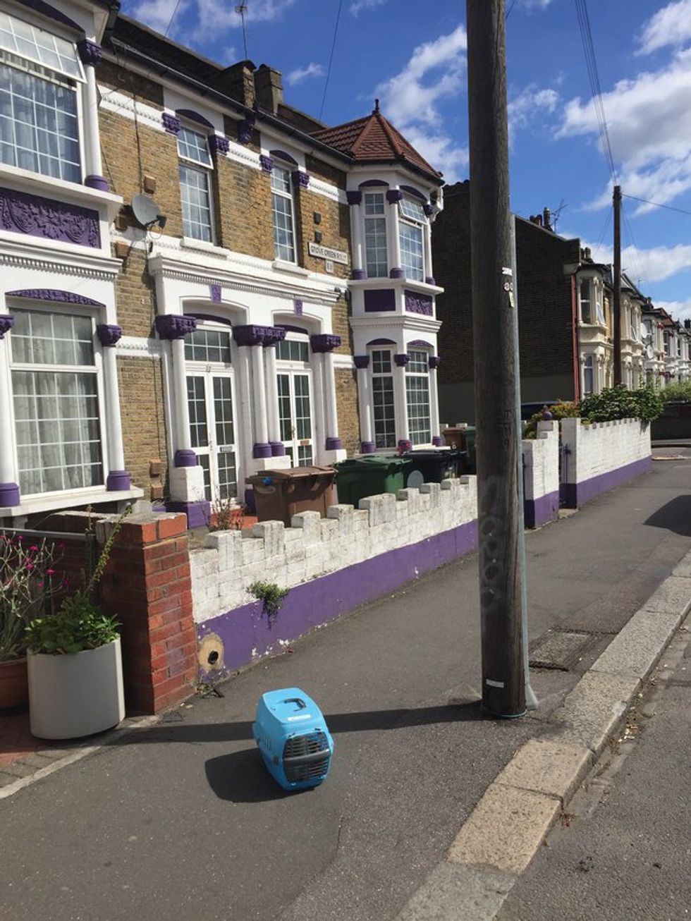 A man couldn't believe his eyes when he spotted a cat in a carrier meowing on the street in Leyton (London) last Friday morning.