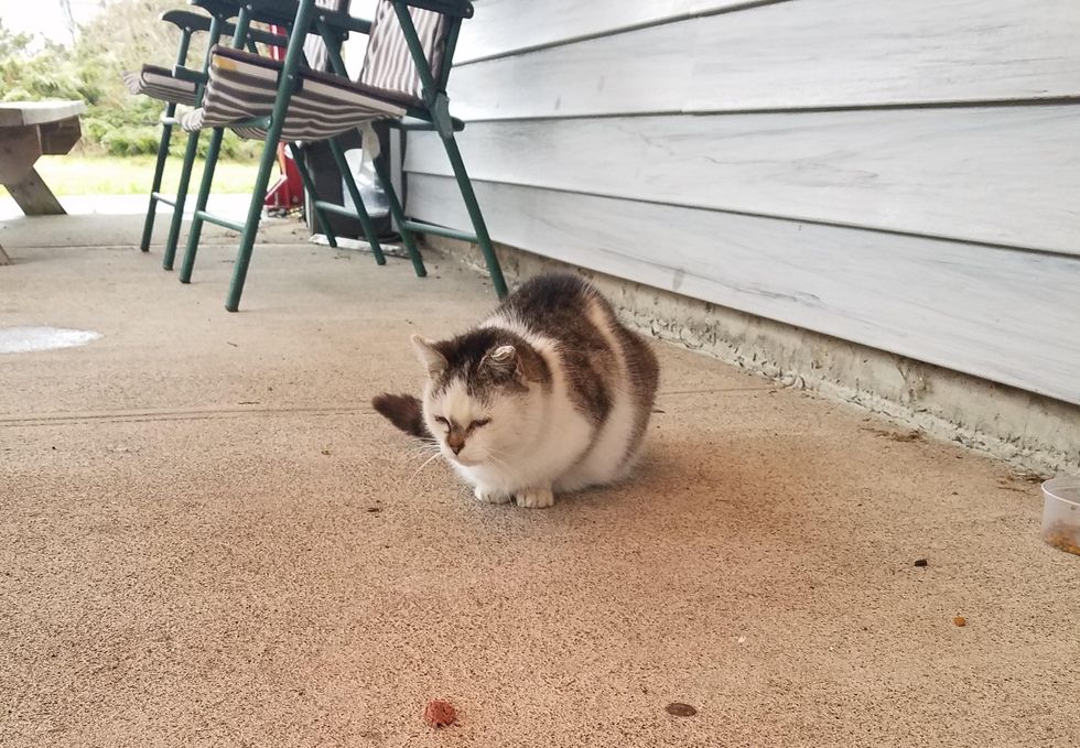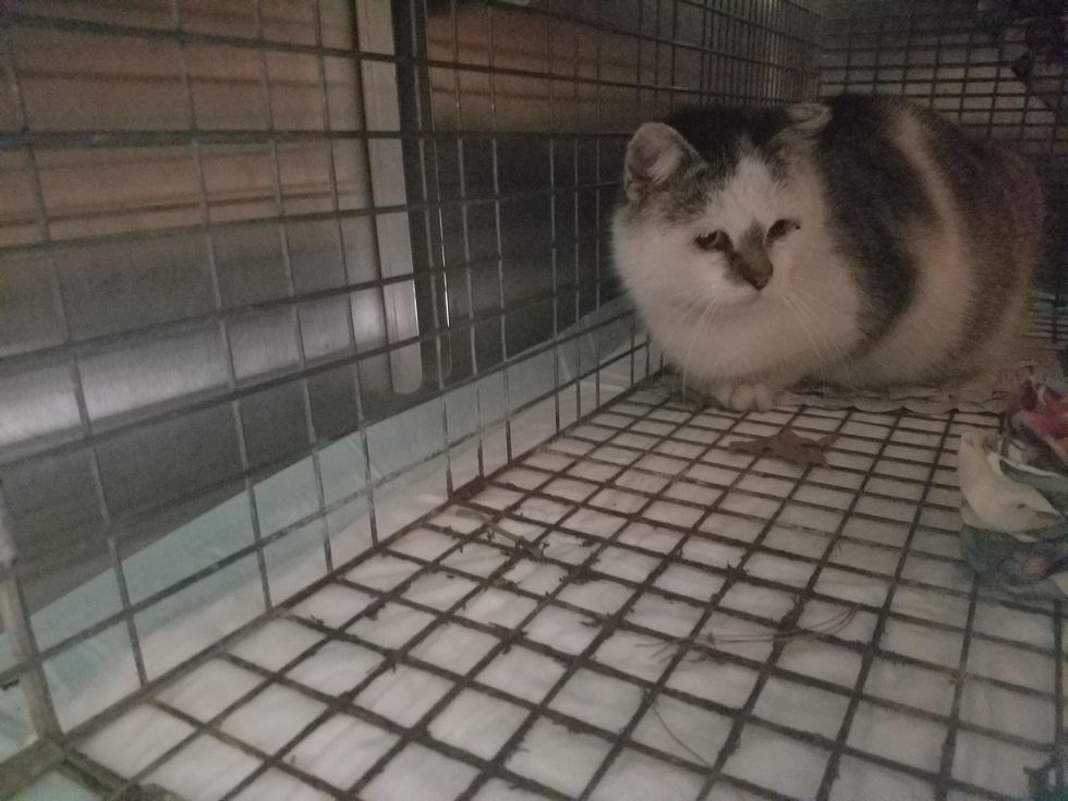 The sad-looking kitty had been living at a local Bagel Shop for four years. Though they had been feeding her and even built a cat house for her, they didn't know what else they could do to help.