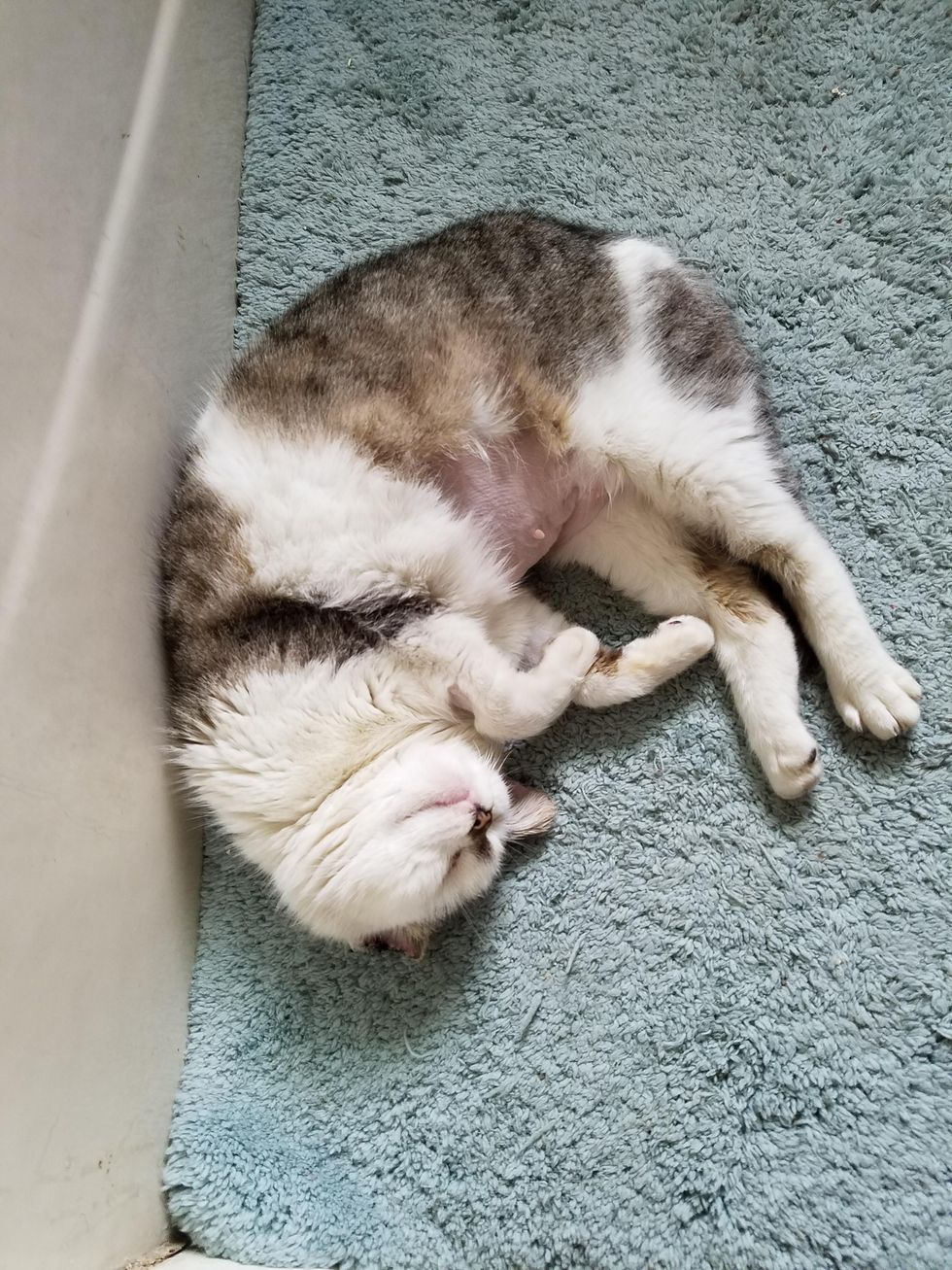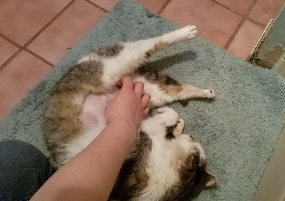 "Three days post surgery and she was already back to her normal self." A week later, she couldn't get enough of belly rubs and chin scratches. "She won't move if you are in the room, but she won't shy away if you approach for pets."