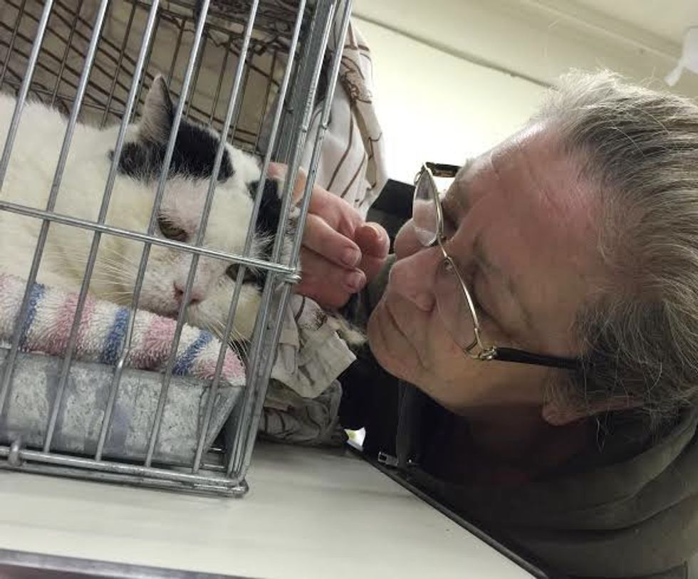 A good man had been feeding this cat in his yard for about three months. Tuffy would come out of the bushes at the back of his home for food, but when he began to look very haggard, the man knew he had to help.