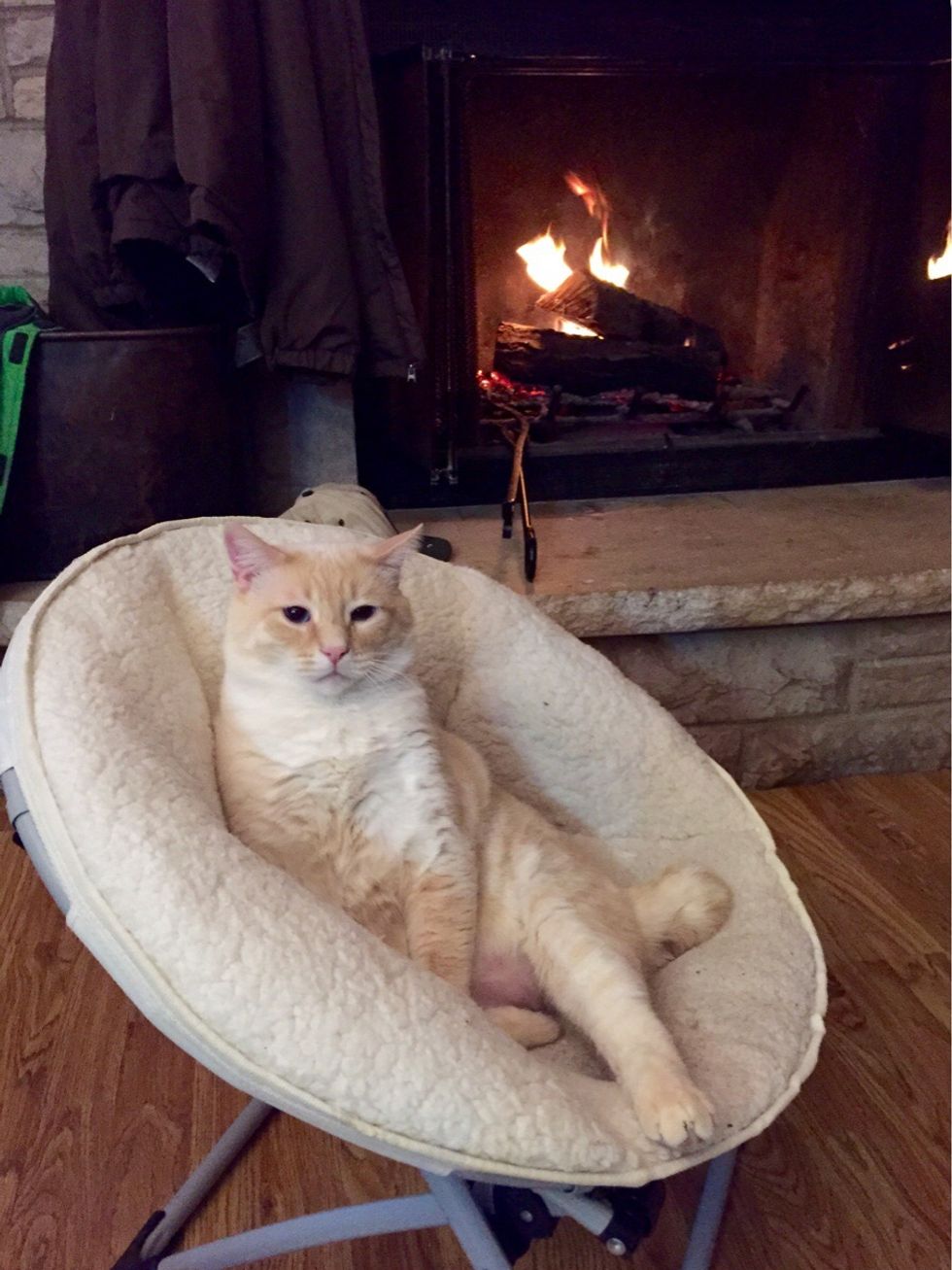 "This cat is pretty much spoiled to death by my dad and is his closest companion. I'm pretty sure he likes the cat more than most people."