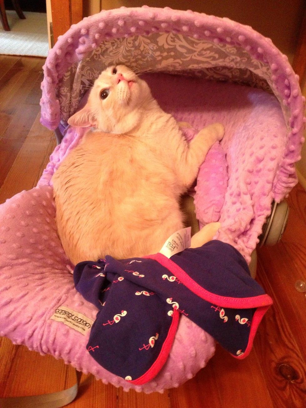 The kitty got jealous of the grandbaby's birthday present, so his human found one way to settle it...