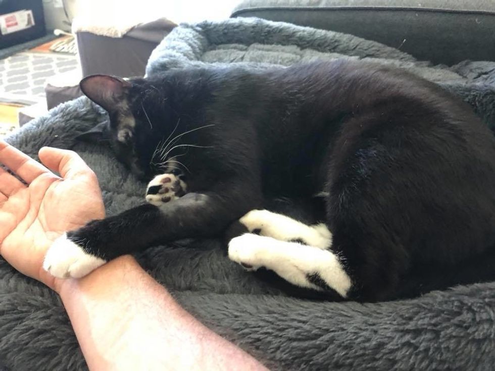 After his first surgery, Bernie went right back to snuggling with his Foster Dad and purring up a storm. "Throughout all of this he had been incredibly sweet, and was so affectionate," Josh said.