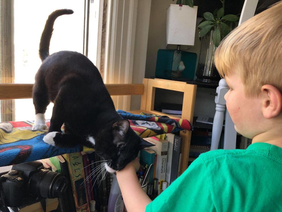 "He's gone from living on the street to a loving home with two other cats and a family that loves him dearly," Josh said.