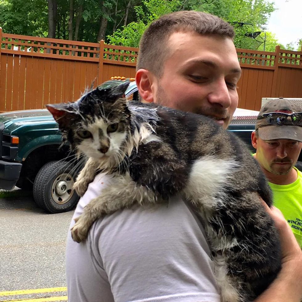 The Winchendon fire department received a call about the cat needing help, they quickly came to the rescue. "When we arrived the cat was barely breathing and moving as she was hanging from the grate," The Winchendon fire department wrote on Facebook.