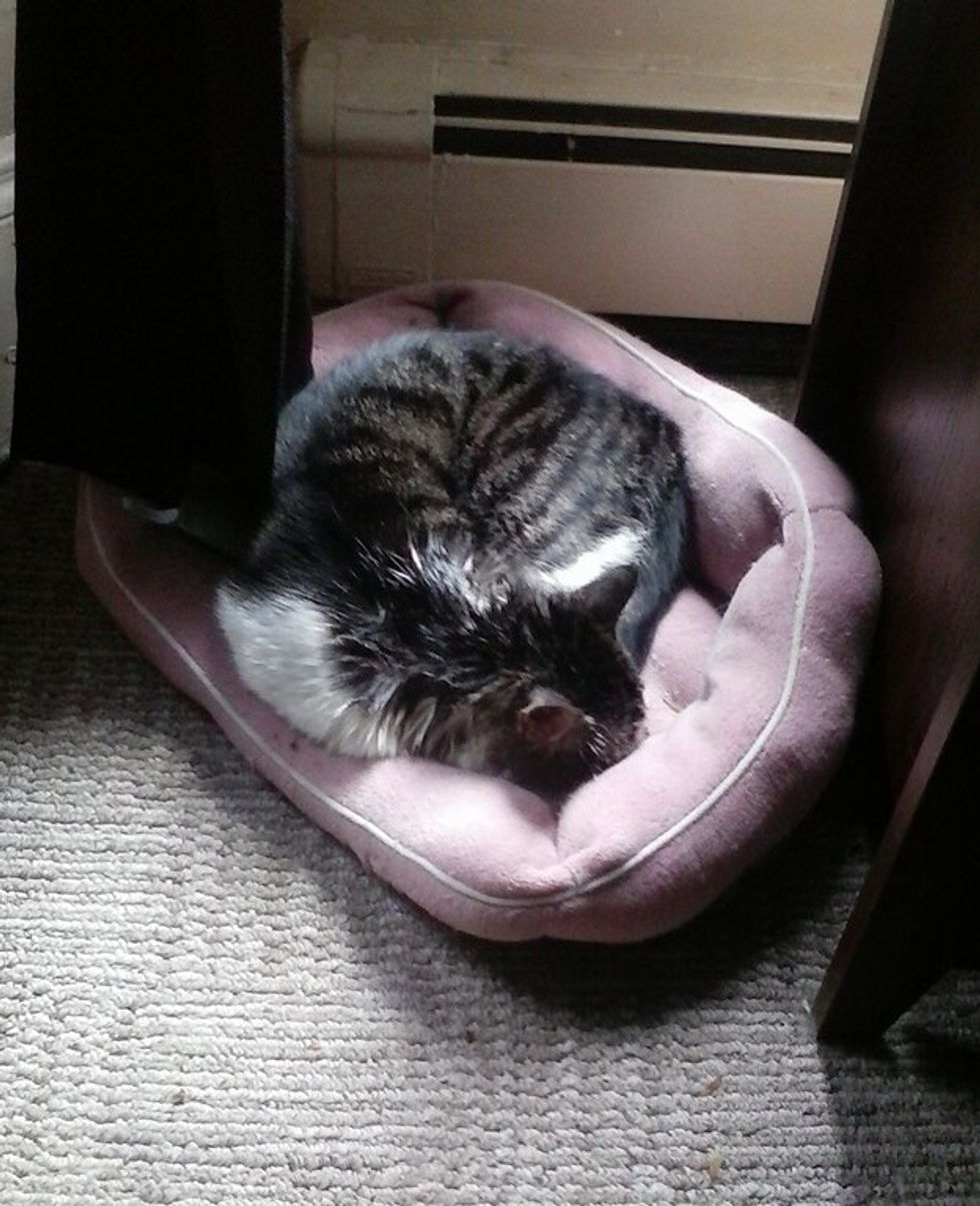 Home sweet home. The mischievous kitty loves the comfort of her home. "She won't leave her bed now," Tim, kitty's human, said.