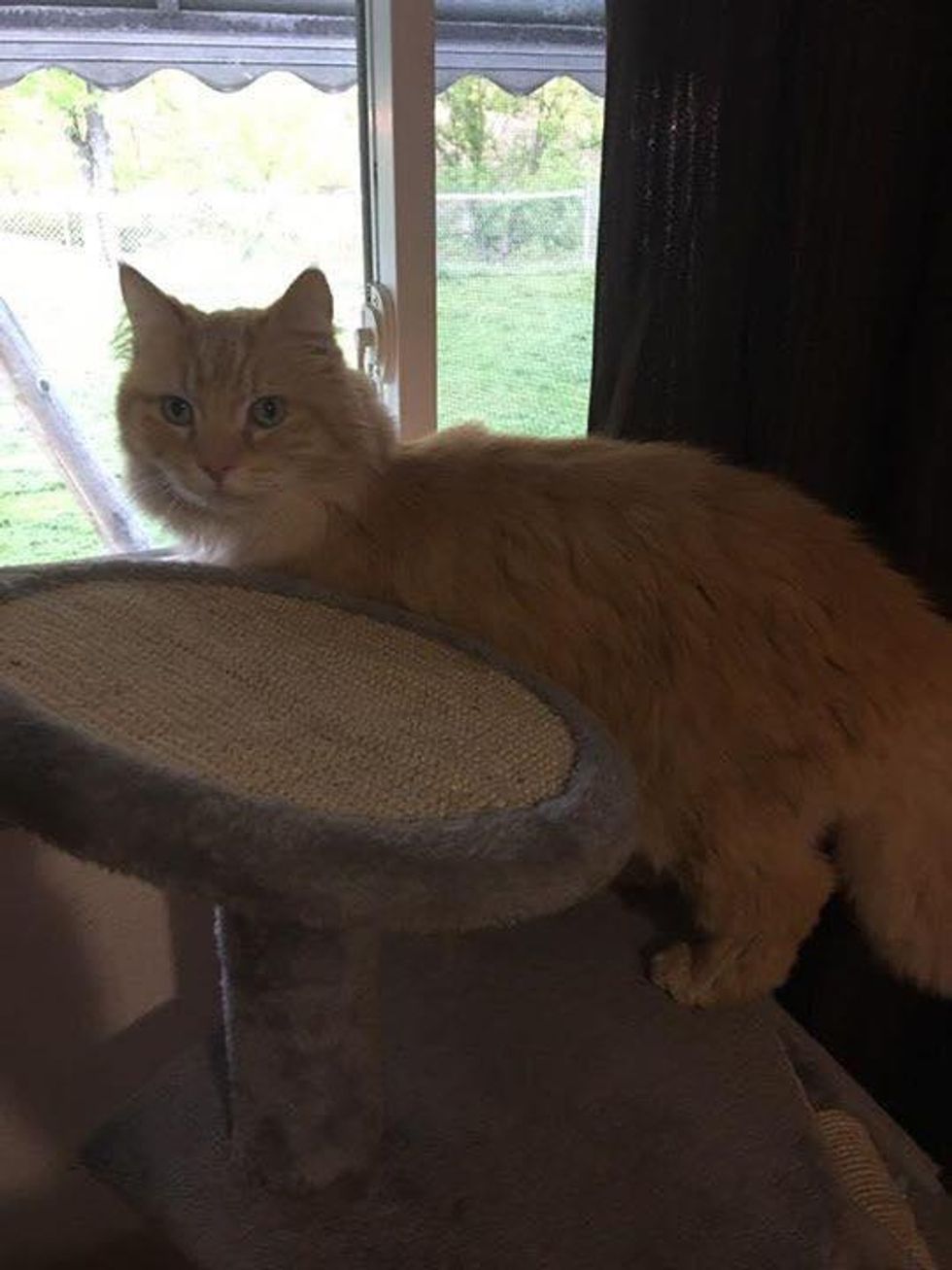Buddy was taken to the Kanawha Charleston Humane Association. He was depressed, grieving and understandably upset. The kitty would growl and hiss when someone would approach him.