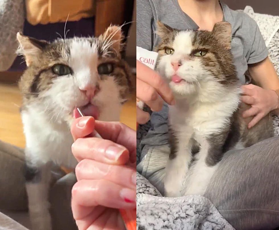 "Bullion was estimated to be eight years old. He was just skin and bones, tested positive for FIV (feline immunodeficiency virus), and had a severely infected mouth and a host of other health issues," Celine added.