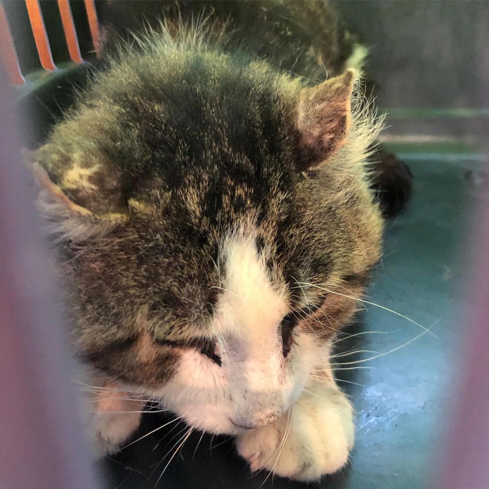 Karoline got in touch with a TNR (trap-neuter-return) rescuer, Nadia, for assistance to save the cat. "Nadia arrived and noticed he was in rough shape and needed immediate medical attention. His ears had scars from frostbite and he walked with his head down," Celine told Love Meow.