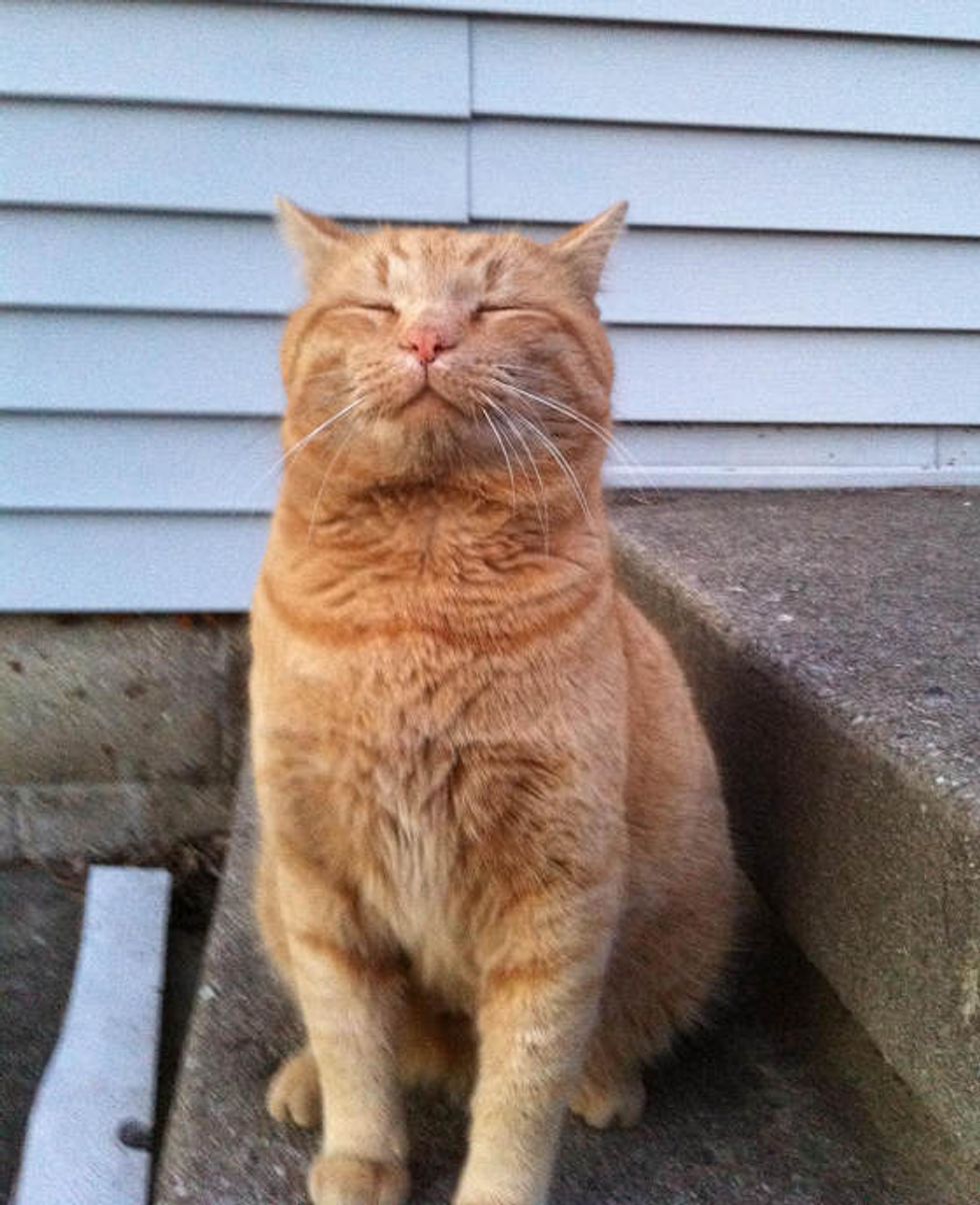 "He's been living the street life for awhile, and when he first started coming around, he was scared of people. Last winter, I made him an insulated cat house, and I saw him out and about all hours."