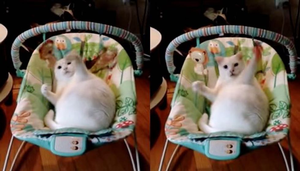 This ginger kitty likes the baby swing so much that his humans are keeping it for the cat :). (Watch video)