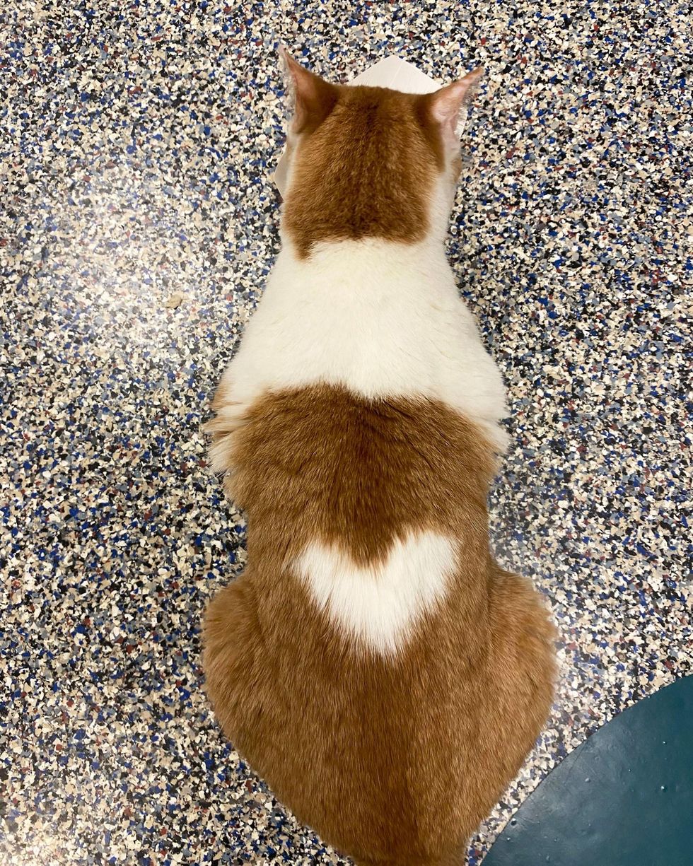 A shelter cat who wears a perfectly shaped heart on his back, is looking for a forever family to love.